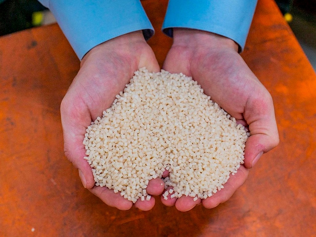 Uses microorganisms that consume methane and air to produce PHB (polyhydroxybutyrate), then pelletize it into plastic-like materials.