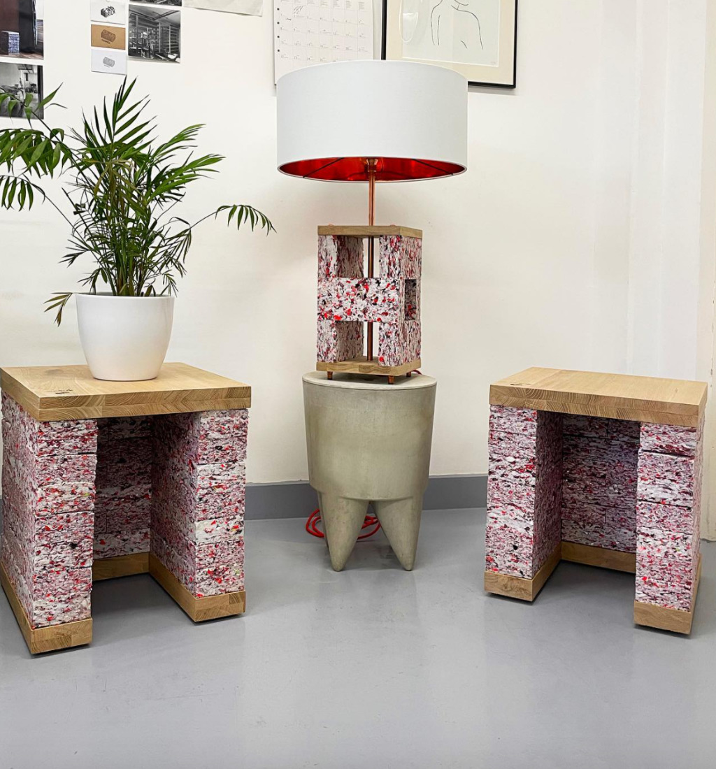 • Utilizes recycled textile waste for brick production